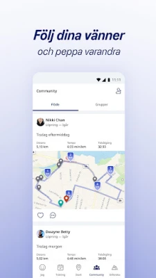ASICS Runkeeper sträcker sig bortom löpspåret med en mängd kompletterande funktioner. Delta i löpargrupper för att skapa egna utmaningar, följa varandras framsteg och peppa varandra genom en inbyggd chatt. För en sömlös upplevelse under passet ger ljudmeddelanden dig viktig information om tempo, distans och tid direkt i örat. Synkronisera enkelt med dina favoritappar som Spotify och Apple Music för musik, koppla upp mot Garmin för en heltäckande dataanalys, eller integrera med hälsoappar som Fitbit och MyFitnessPal. Även inomhuspass som löpband och crosstrainer kan spåras, och med live-följning kan du tryggt dela din position med utvalda kontakter. Dela dina aktiviteter och framsteg i sociala medier för att inspirera och motiveras.