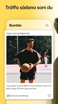 Välkommen till Bumble, plattformen där äkta möten tar form och nya kapitel inleds. Vi är övertygade om att djupa och meningsfulla relationer utgör fundamentet för ett rikt liv, och det är med den visionen vi har byggt en trygg och inkluderande miljö. Här kan du utforska kontakter baserade på ömsesidig respekt och tillit, oavsett om du söker den stora kärleken eller nya spännande dejter. Bumble är din partner på resan mot att finna genuina band, med ett starkt fokus på din säkerhet och välbefinnande.
