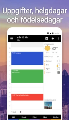 Få en oöverträffad överblick över ditt liv. Vare sig du behöver se hela månadens schema eller anpassa veckovyn från 1 till 14 dagar med en enkel svepning, ger Business Kalender 2 dig full kontroll. Upptäck lediga tider med värmekartan i årsplaneraren, bjud in gäster och hantera inbjudningar direkt i appen, och sök igenom hela ditt schema. Anpassa din kalender ytterligare genom att färglägga evenemang och berika dem med över 600 emojier. Missa aldrig något viktigt tack vare konfigurerbara aviseringar, med möjlighet att agera direkt från notisen – som att skicka e-post, visa karta eller markera en uppgift som slutförd. För optimal bekvämlighet erbjuder appen sju professionella widgetar för din startskärm, helt anpassningsbara för att spegla din stil och behov, samt en fullt fungerande Wear OS-app som håller dig uppdaterad på handleden. Med unika premiumfunktioner som 7-dagars väderprognoser, avancerade uppgiftshanteringsalternativ med deluppgifter och prioriteringar, 22 vackra appteman och möjligheten att skriva ut ditt schema till PDF, är Business Kalender 2 designad för att optimera varje aspekt av din planering. Denna kraftfulla app är utvecklad med energi och passion av ett litet, dedikerat team i Berlin som en del av Business Kalender-familjen, och genom att utforska dess omfattande funktioner stödjer du dess fortsatta utveckling.