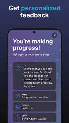 För att förvandla dig till en sann musikmästare erbjuder GuitarTuna en uppsättning professionella träningsverktyg som lyfter din övningsrutin. Använd den anpassningsbara metronomen för att hitta det perfekta tempot, finslipa dina ackordkunskaper med roliga spel, och utveckla ditt musiköra med den intuitiva gehörstränaren. Ett omfattande ackordbibliotek med diagram och ljud finns alltid till hands för referens. Med funktioner som vänsterhänt läge är GuitarTuna utformad för att vara tillgänglig för alla. Denna heltäckande lösning i din ficka är den ultimata följeslagaren för alla stränginstrumententusiaster som strävar efter att spela bättre och upptäcka glädjen i musik.