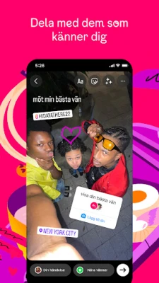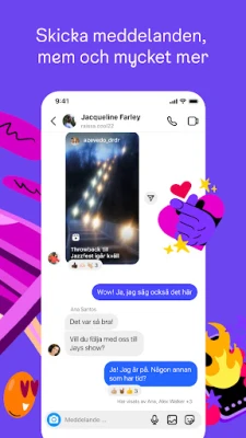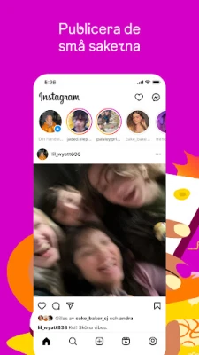 Uttryck dig fritt och håll dig uppdaterad på nya, spännande sätt. Dela oförglömliga minnen från resor och evenemang direkt i ditt flöde, eller använd de korta, tidsbegränsade Händelserna och Anteckningarna för att snabbt kommunicera med nära och kära när du är på språng. Skapa gruppchattar för att dela ofiltrerade stunder, och låt din kreativitet flöda med Reels – korta, medryckande videoklipp som förvandlar din vardag till ren underhållning. Med exklusiva mallar, musik, dekaler och filter kan du anpassa varje inlägg och ge det din unika prägel.