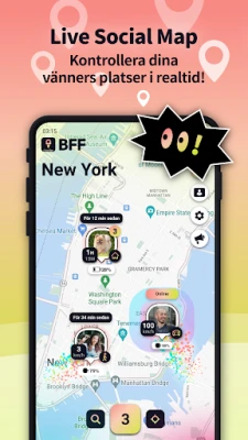 Fördjupa era vänskapsband genom privata konversationer i den inbyggda chatten. Här kan ni skämta, planera gemensamma aktiviteter eller diskutera viktiga saker med roliga emojis. Utforska sedan världen tillsammans! Upptäck intressanta platser i närheten och se var dina vänner befinner sig. Att lägga till nya kontakter är enkelt: använd ID, e-post, telefonnummer, QR-kod, synkronisera med befintliga kontakter, eller skaka telefonen för att snabbt ansluta till någon i närheten. Gör er redo att hitta de bästa lunchrestaurangerna eller de mysigaste kaféerna att uppleva tillsammans.