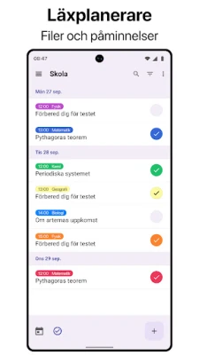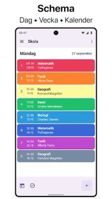 Skolschema och Uppgifter hjälper dig att organisera din skoldag effektivt. Hantera flera scheman samtidigt, inklusive roterande, och få notifikationer för lektioner och uppgifter. Använd widgetar för överblick och lägg till foton, videor eller ljud till dina uppgifter. Appen erbjuder även stöd för Wear OS.