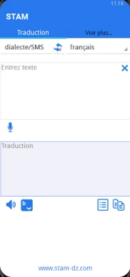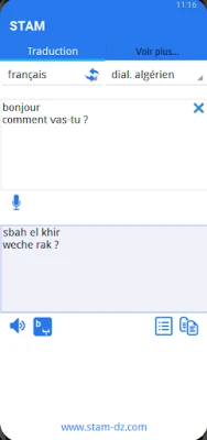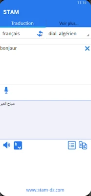 STAM översätter automatiskt texter från nordafrikanska dialekter till lättförståelig franska eller engelska. Appen underlättar kommunikation genom att även hantera översättning i motsatt riktning, vilket gör komplexa texter begripliga.