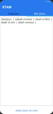Upptäck en revolutionerande språklösning med STAM, appen som specialiserar sig på Nordafrikas rika dialektala mångfald. STAM utmärker sig som ett unikt och innovativt system genom sitt omfattande stöd för algeriska, amazigh (berbiska), egyptiska, marockanska och tunisiska dialekter. Detta gör STAM till ett kraftfullt verktyg för att navigera och förstå de olika språken i regionen, helt enkelt oöverträffat i sin täckning. Appens gränssnitt är tillgängligt på både engelska och franska, för en smidig användarupplevelse.