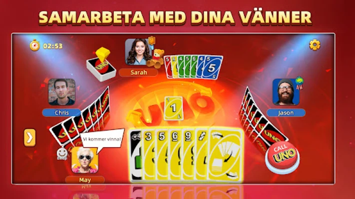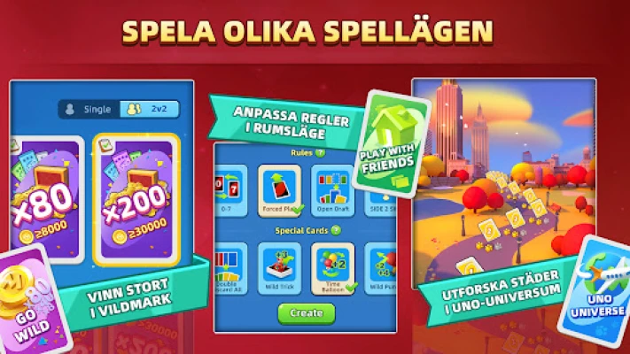 Förenas med en kamrat i det strategiska 2-mot-2-läget, där samarbete är nyckeln för att minimera era händer och överlista motståndarna. För den tävlingsinriktade väntar pulshöjande världsserieturneringar och specialevenemang där du kan vinna exklusiva belöningar och klättra på de kusliga ledartavlorna. Håll kontakten med dina spelkamrater via klubbar, skicka gåvor och smid planer för att vara den första att ropa UNO! – oavsett var i världen ni befinner er.