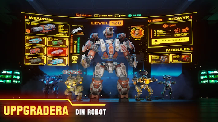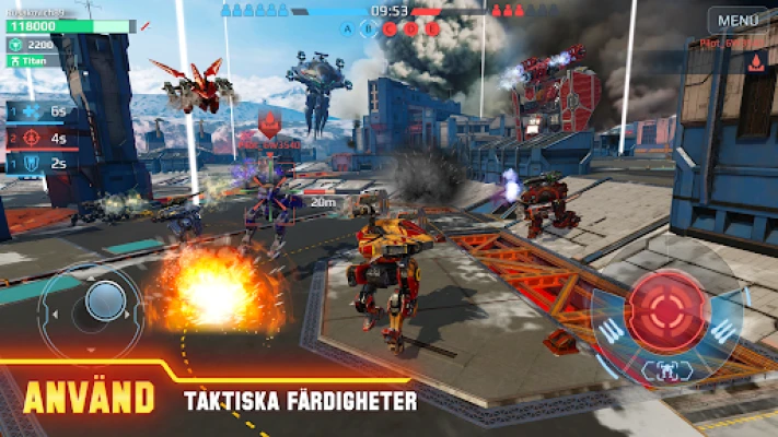 War Robots. PvP Robo Krig spel är ett episkt skjutspel med jätterobotar. Delta i intensiva PvP-strider online mot rivaler världen över. Välj bland över 50 unika robotar, uppgradera dina maskiner och använd taktiska manövrar för att dominera slagfältet. Bli den bästa mech-befälhavaren och visa din skicklighet i War Robots.